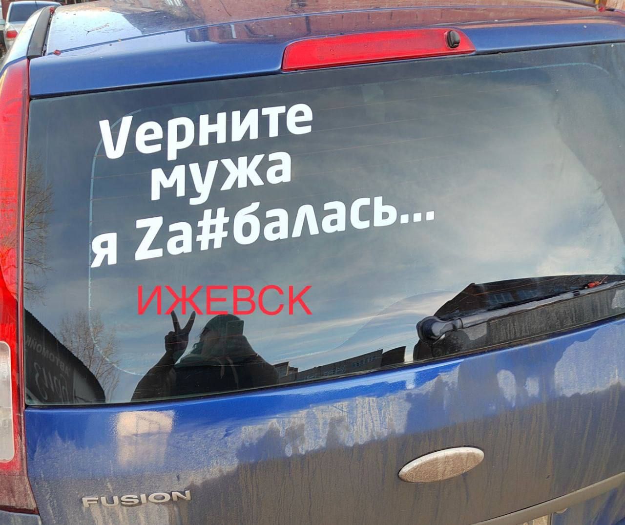 Жінки клеїли на скло автівок наліпки зі словами: "Vерните мужа, я Zа#балась". Уже 2 грудня росЗМІ повідомили, що у місті Ульяновську до відповідних громадянок Росії прийшли силовики, – інформує 24 Канал.