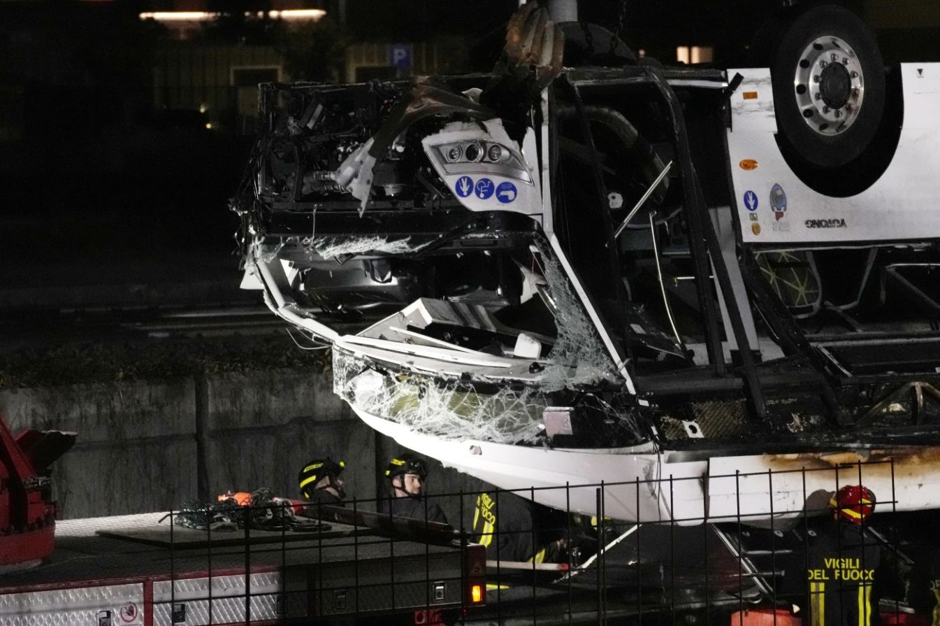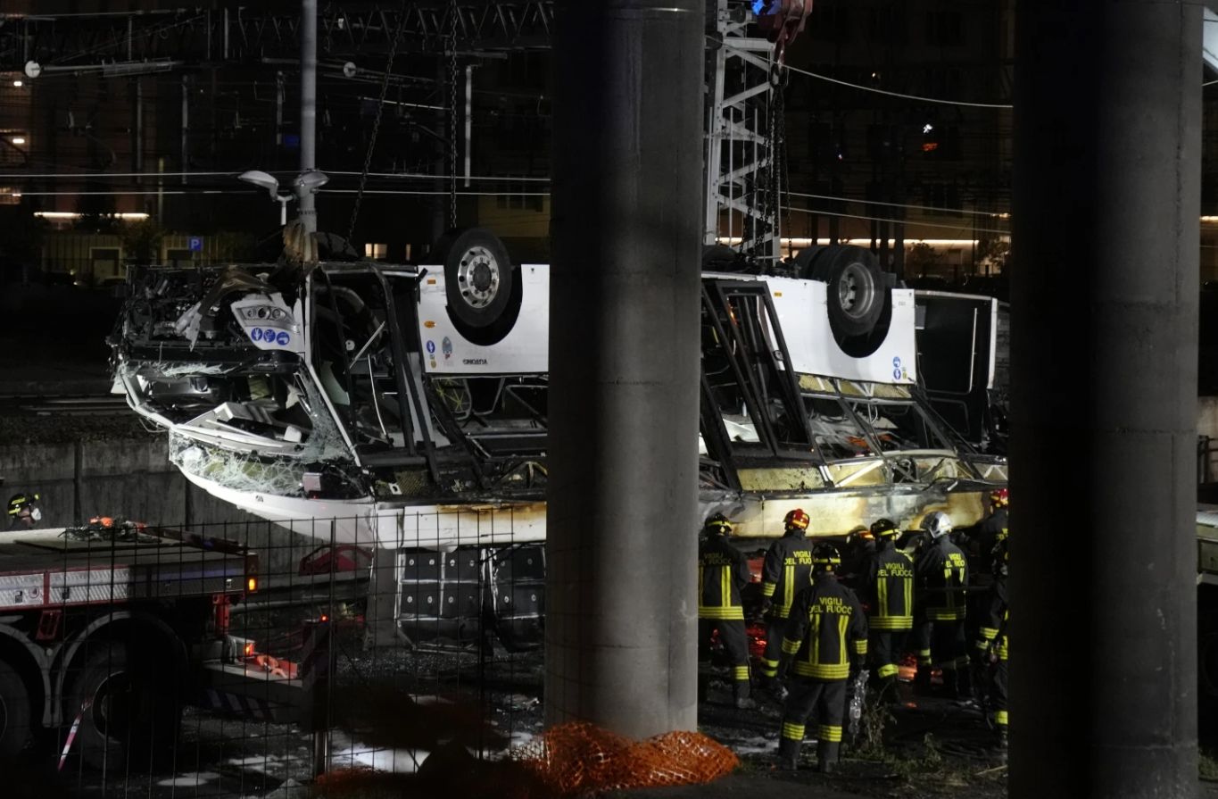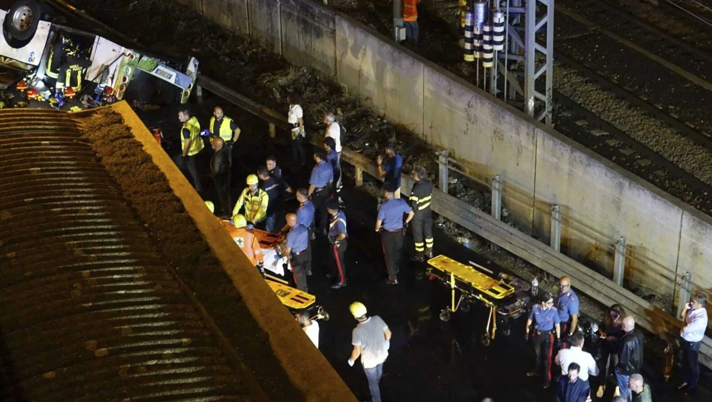 Пасажирський автобус увечері 3 жовтня з'їжджав із Местре на Маргеру й автомагістраль А4. У якийсь момент транспортний засіб перескочив через перила мосту й полетів униз. Автобус пролетів 30 метрів і впав на залізничні колії Местре, після чого – спалахнув. Він згорів дуже швидко, адже працював на метані.