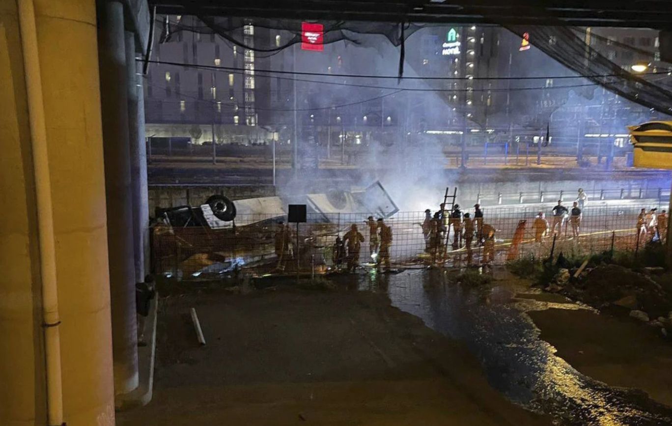 Автобус пролетів 30 метрів і впав на залізницю
