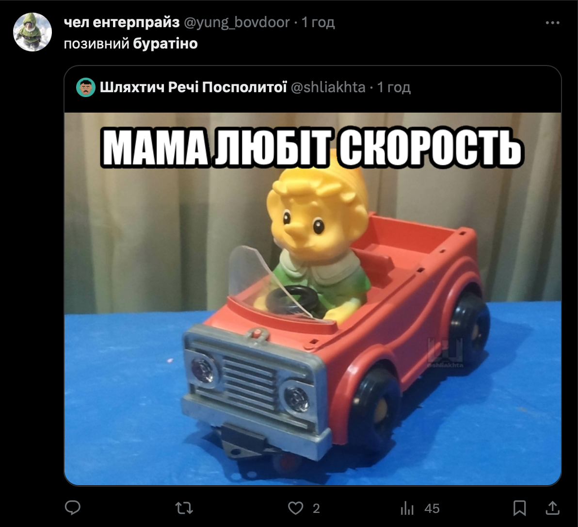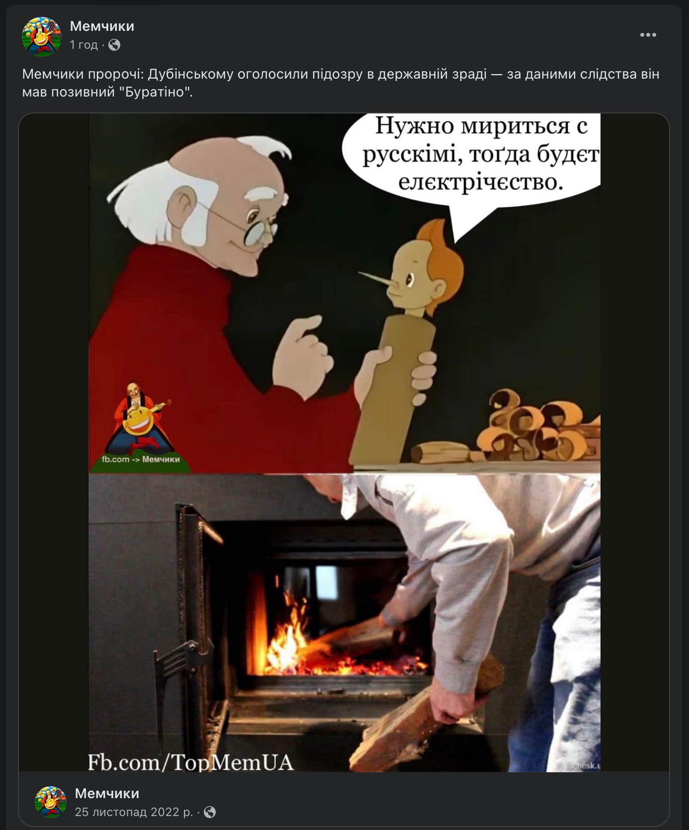 Звичайно ж, не минулося без буквалістики. От вам мем, в якому Дубінський ідеально перевтілився в Буратіно. Того самого героя, на честь якого народний депутат / російський агент отримав позивний. Зрештою, Дубінський, якого люди полюбили за те, що він був обличчям команди розслідувачів проєкту "Гроші", спочатку виявився звичайнісіньким брехуном. А потім – зрадником країни.