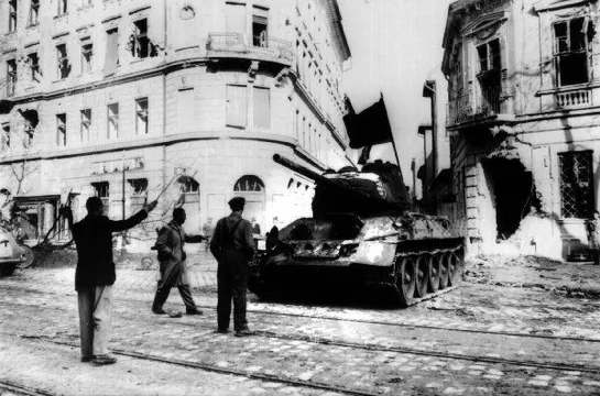 Жителі міста зупиняють бронетехніку військ СРСР. Фото з відкритих джерел.