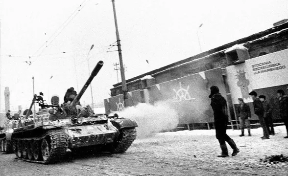 Польський протестувальник виходить "тет-а-тет" перед танковою колоною СРСР. Фото з відкритих джерел.