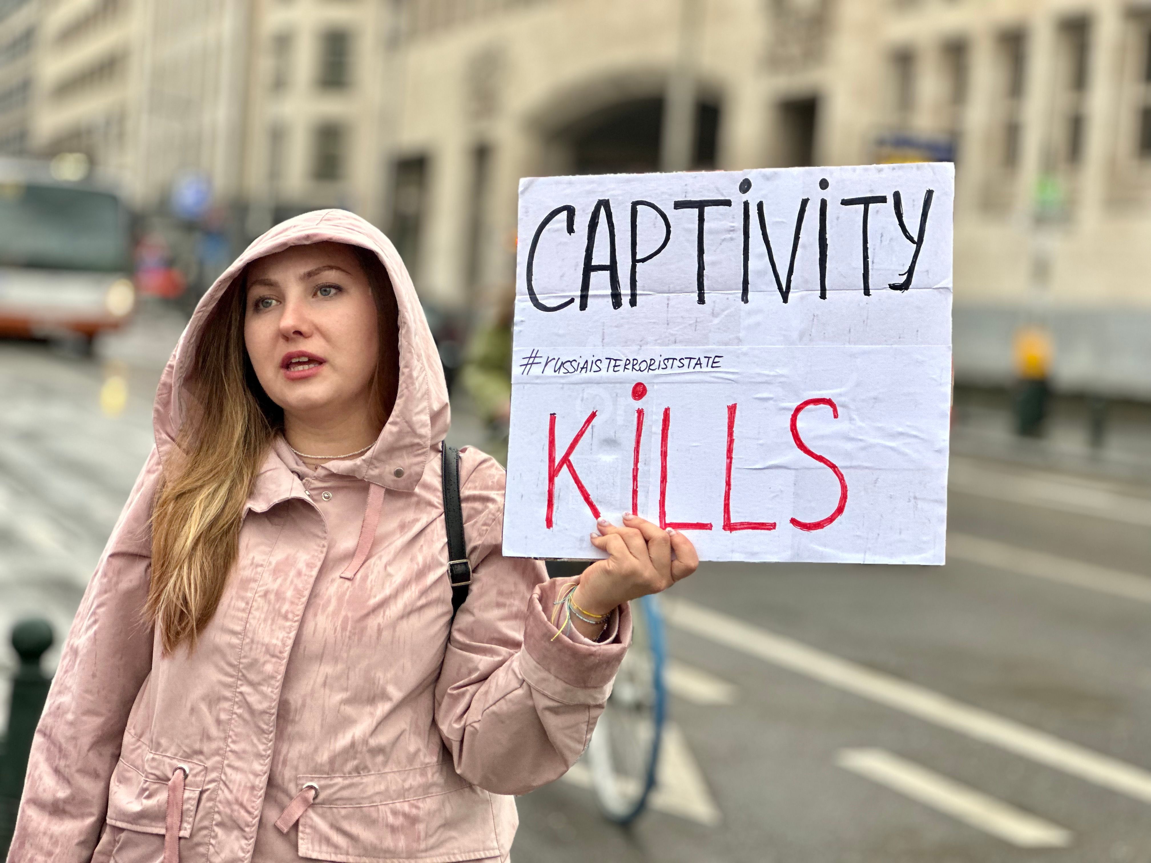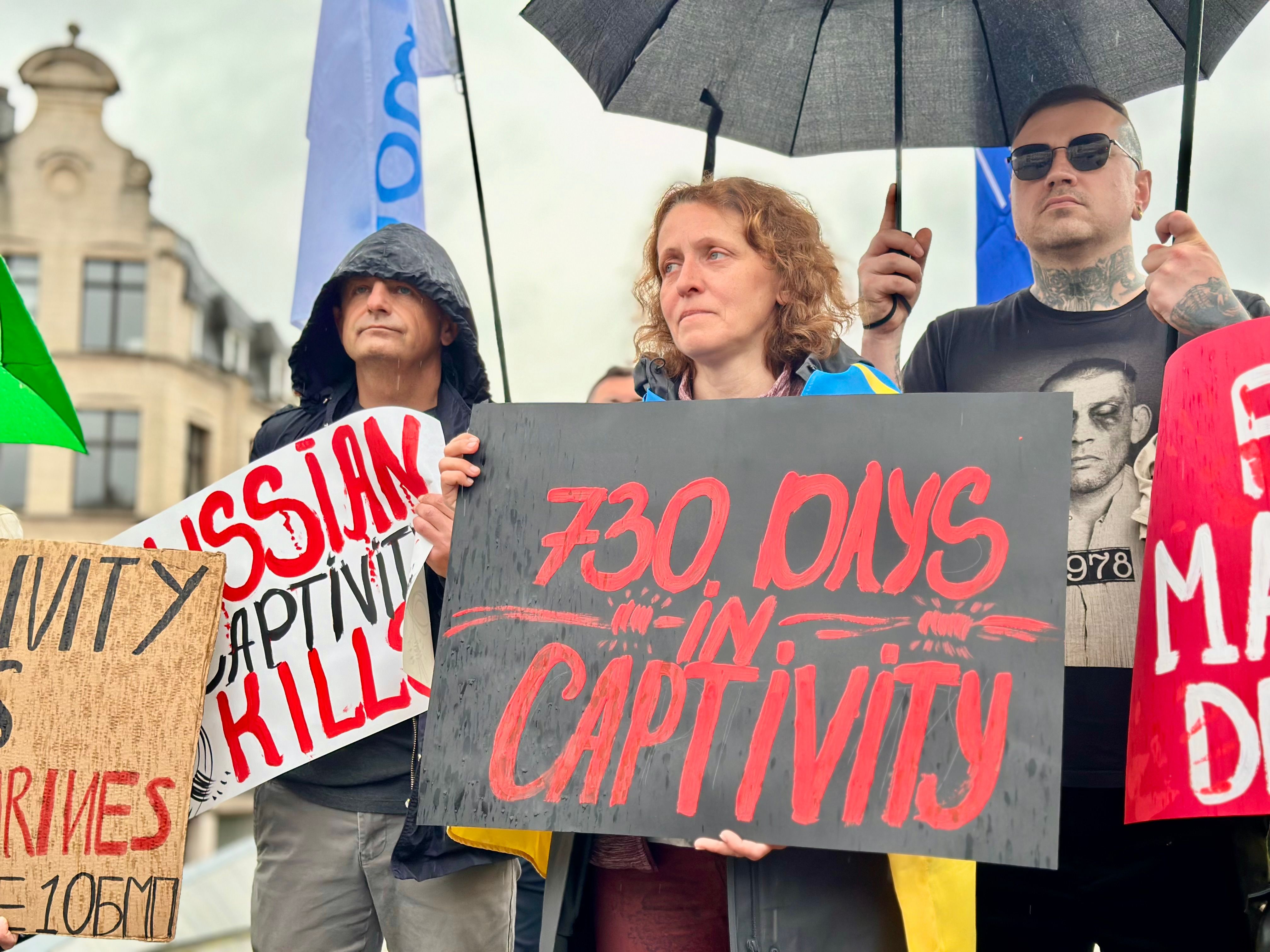 На мітинг у Брюсселі вийшла дружина полоненого Олена Живило. Її чоловік, Максим Полегенько, служив в 6-ї бригаді морської піхоти, 1-й окремий батальйон. В грудні 2021 року він поїхав на ротацію до Маріуполя і там же залишався на початку повномасштабної війни. Вже з середини квітня 2022 чоловік Олени перебуває у російському полоні та не виходить на зв’язок.