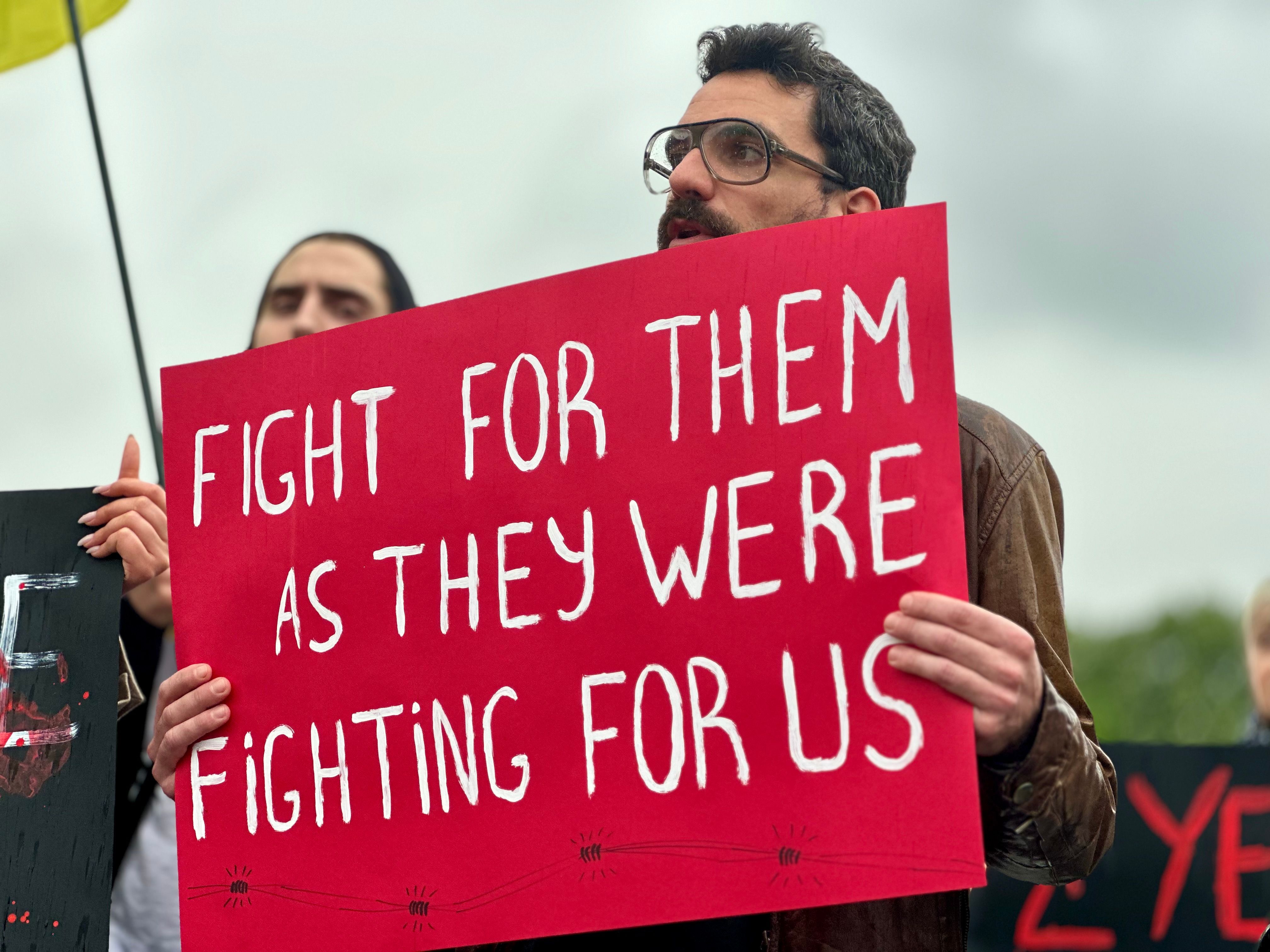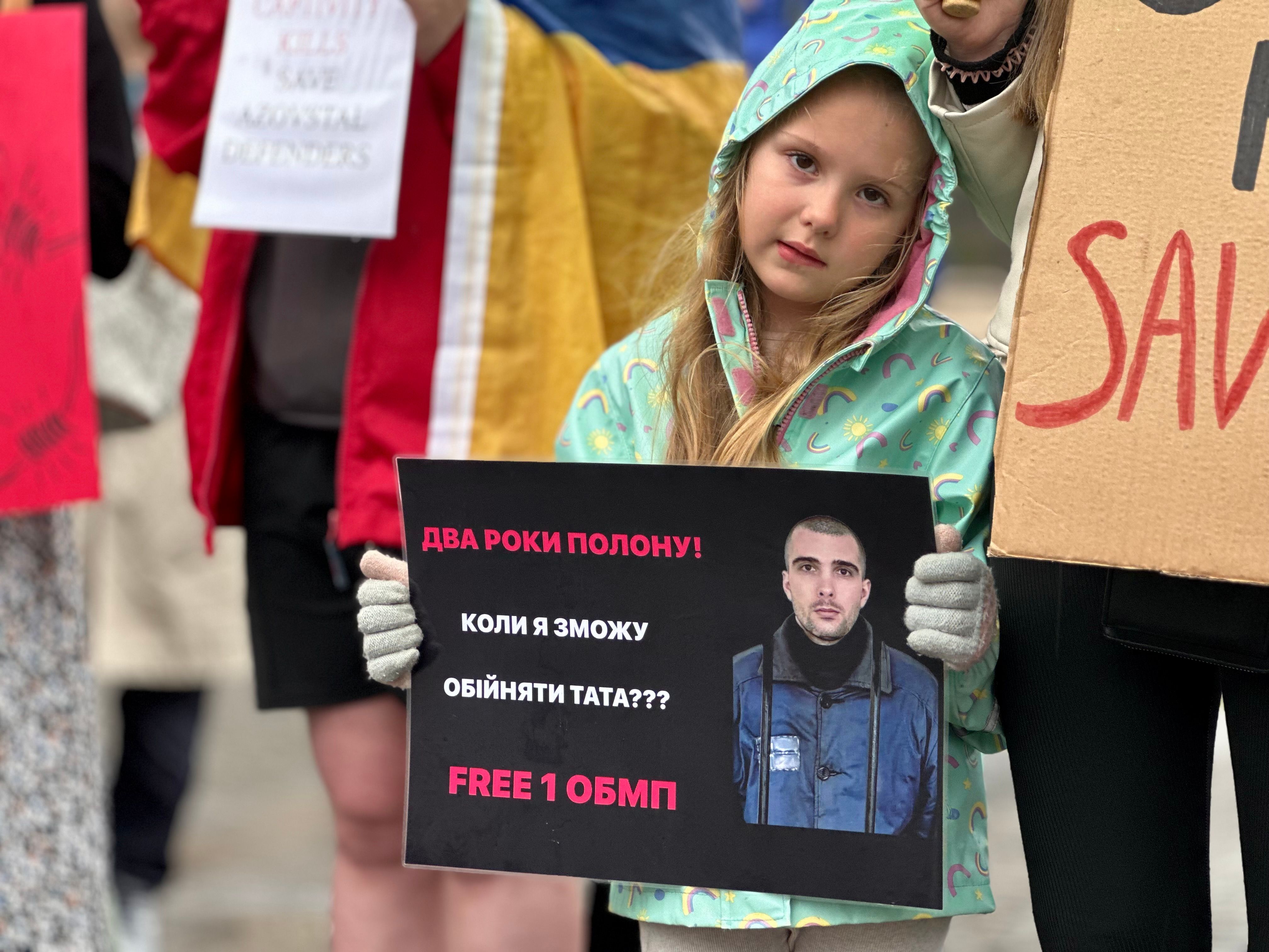 Ми зібралися тут, щоб привернути увагу до того, що захисники Маріуполя вже два роки знаходяться в полоні. З ними немає жодного зв'язку. Червоний Хрест та західні партнери обіцяли, що вони (захисники – 24 Канал.) будуть в безпеці. Ми бачили, що сталося в Оленівці, ми не знаємо, що з ними зараз. Ми хочемо привернути увагу західного світу,