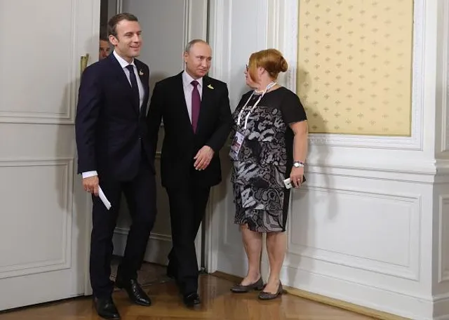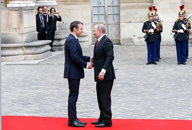 У відомому фотобанку Getty Images можна знайти знімки з зустрічі глав Франції та Росії – знімки справді оригінальні.