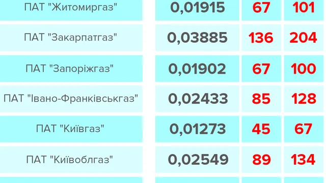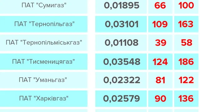 Як уже порахували фахівці "Публічного аудиту", найнижчий тариф встановлено для ПАТ "Тернопільміськгаз" – 0,01108 грн за м3 на годину (без ПДВ), найбільш високий для ТОВ "Газпостачсервіс" – 0,07782 грн за м3 на годину (без ПДВ).