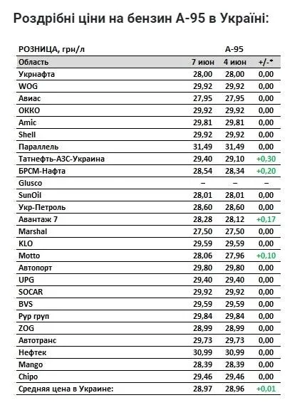 - Бензин А-95 коштує 28,97 гривні, також відбулося зростання на 1 копійку.