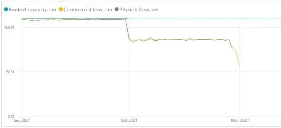 З 1 листопада транзит через Україну вчергове зменшився – до 57 мільйонів кубометрів на добу,