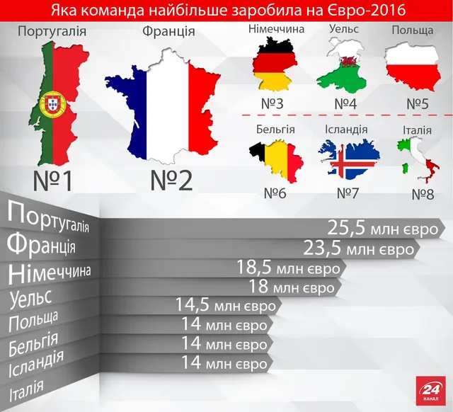 Призовий фонд склав 301 млн євро. Кожен з 24 учасників чемпіонату Європи лише за участь у фінальній частині отримав по 8 млн євро.