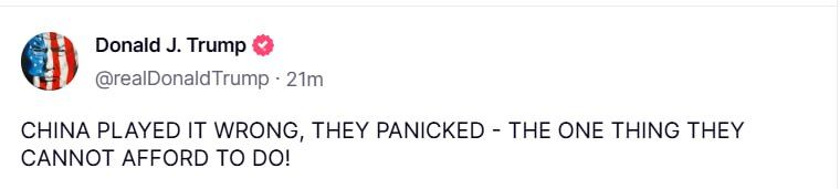 - Трамп різко розкритикував рішення Китаю, назвавши його неправильним, і натякнув на паніку Пекіна.