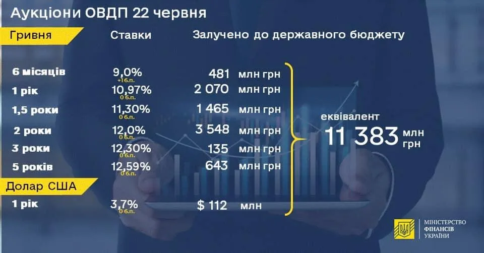Мінфін продав ОВДП на понад 11 мільярдів гривень / Інфографіка Мінфіну