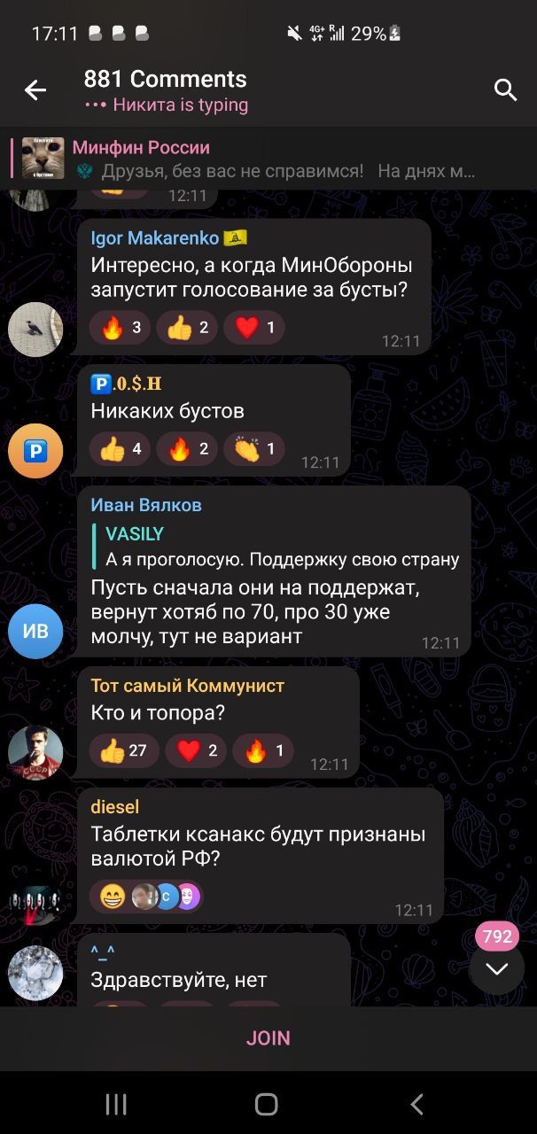 Допис російського мінфіну та реакції на нього / Скриншоти з соцмереж