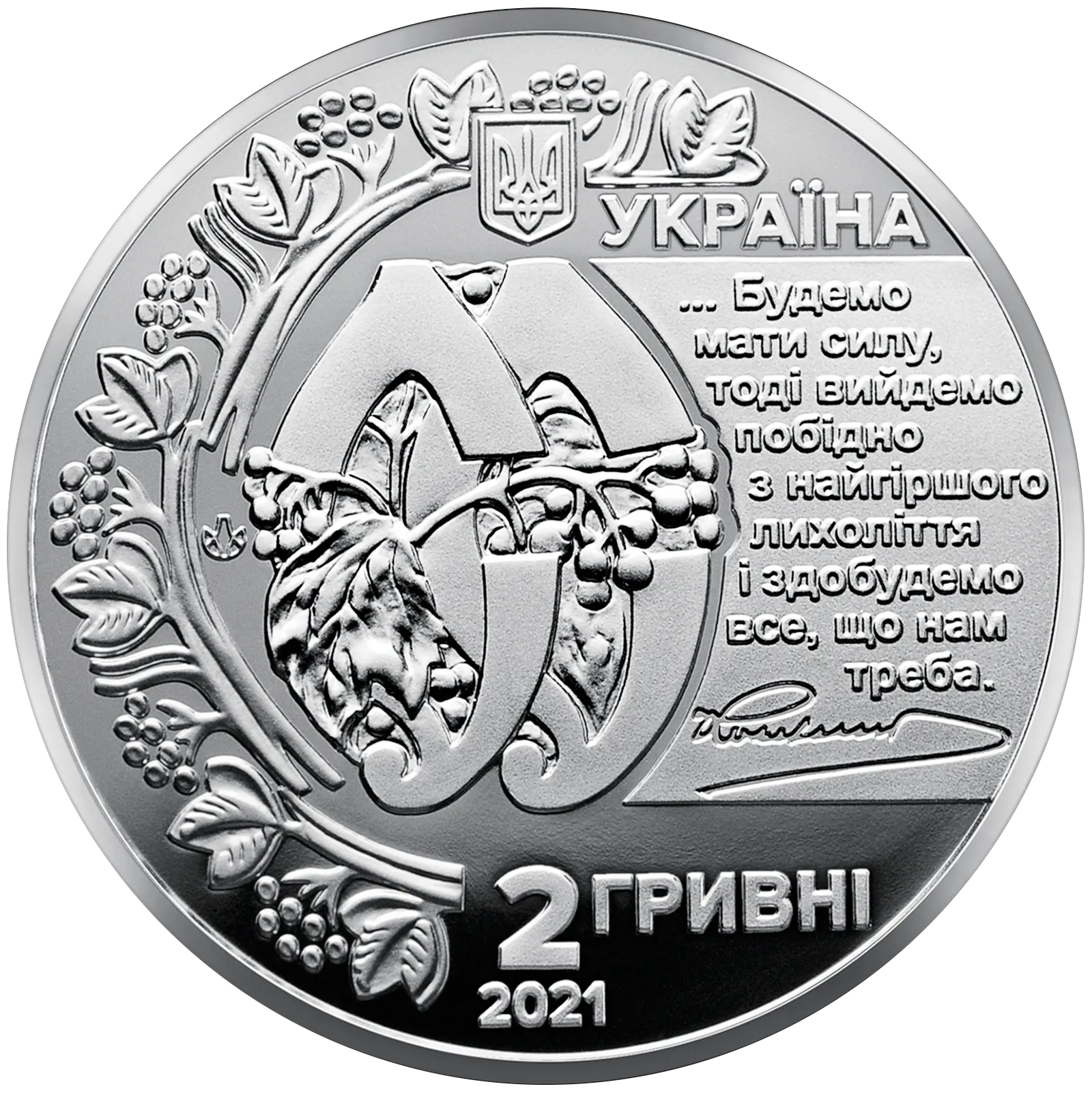 - унизу: номінал монети – 2 гривні та рік карбування монети – 2021;