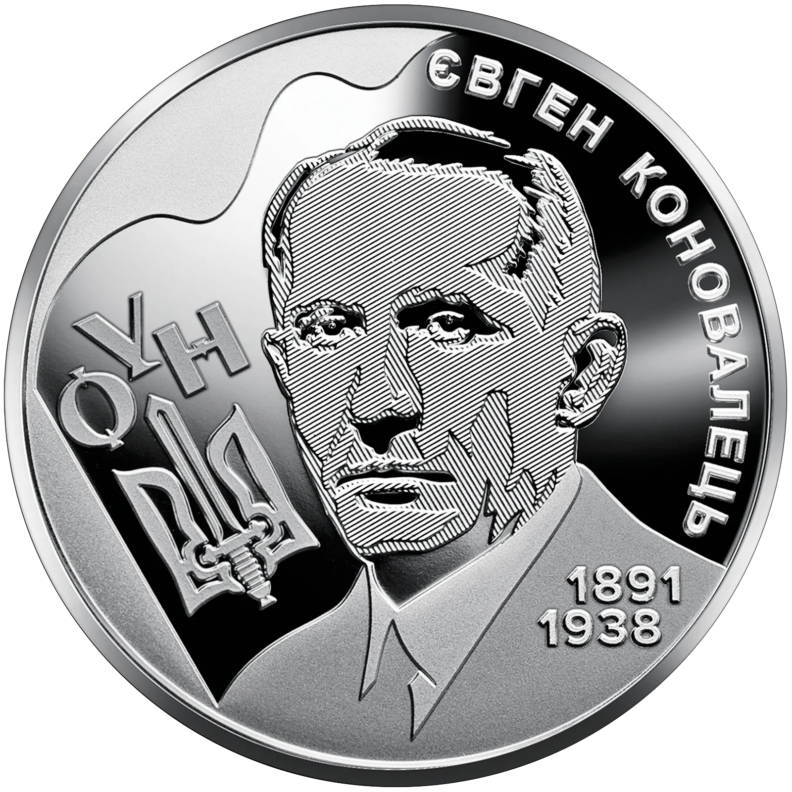 Монета присвячена військовому та політичному діячеві, особистості, яка символізує спадковість української національно-визвольної боротьби, – Євгену Михайловичу Коновальцю,