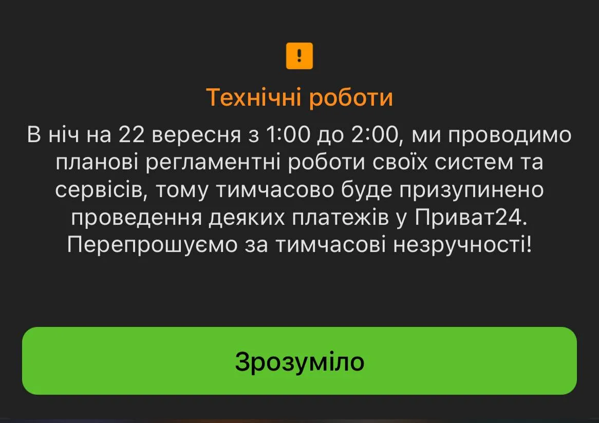 Регламентні роботи у "Приват24"