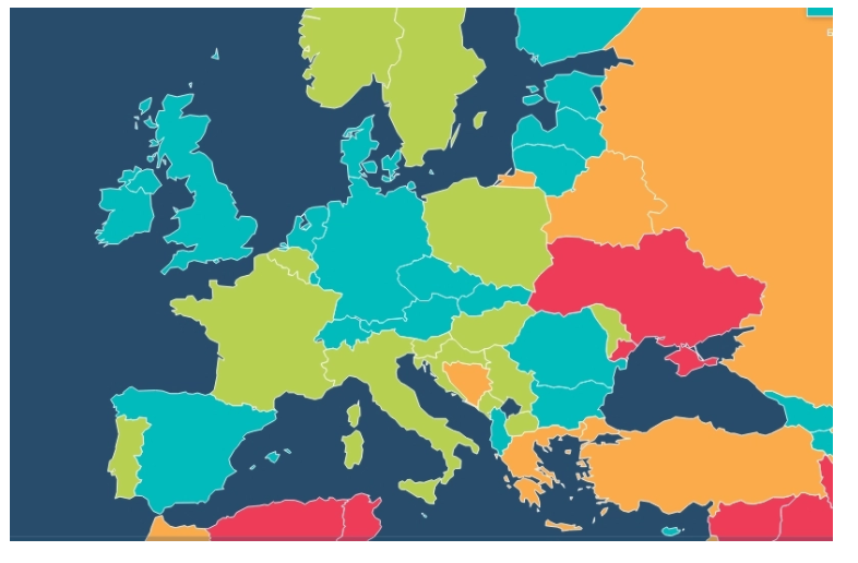 Як видно на карті нижче, Україну виділено червоним кольором. А її сусідами за рейтингом є Пакистан (129 місце), Туніс (130 місце) і Таджикистан (132 місце).