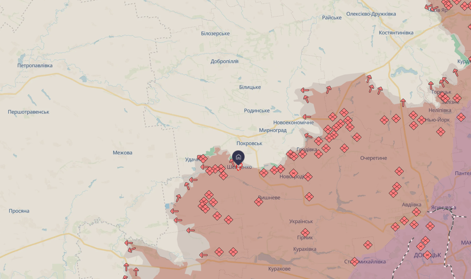 Село Шевченко під окупацією / скриншот мапи DeepState
