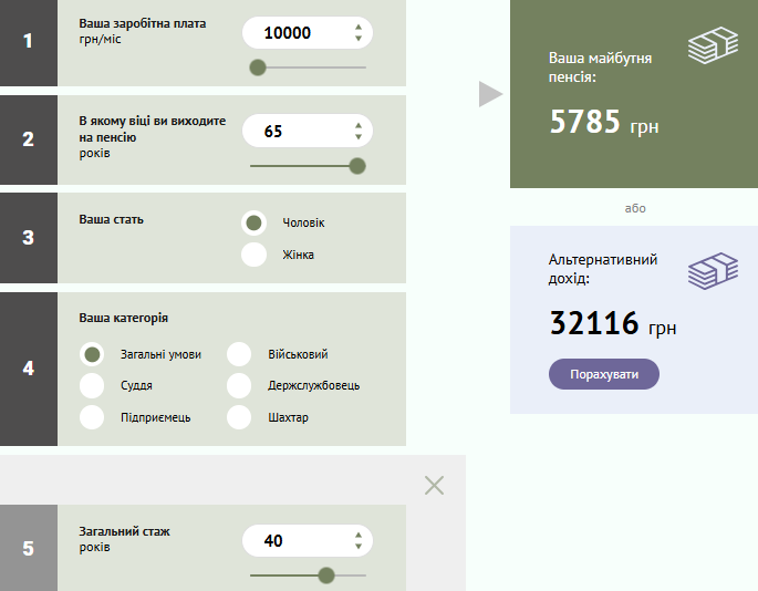 Яка буде пенсія в 60 при стажі 40 років / Скриншот пенсійний калькулятор
