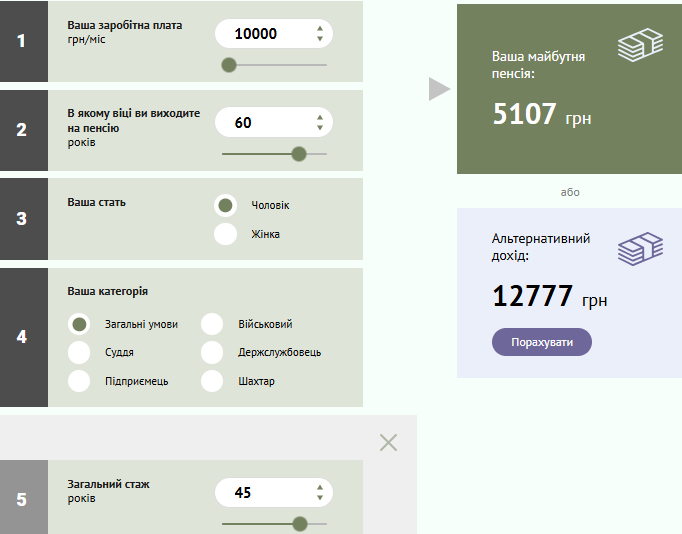Зверніть уваги! Для розрахунків використовувався пенсійний калькулятор.
