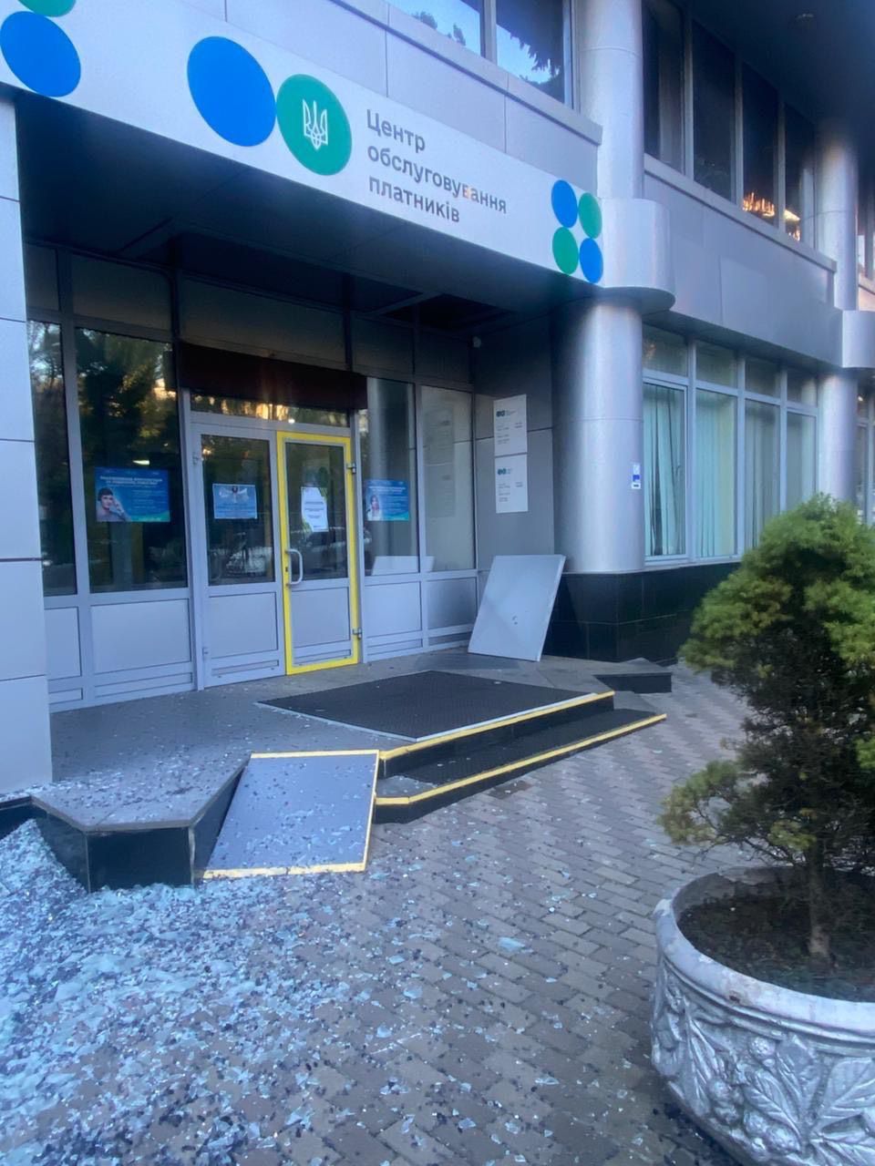 - В результате обстрела Киева повреждены два здания Главного управления ГНС, выбиты окна и повреждены фасады. Также повреждения получили несколько банков.