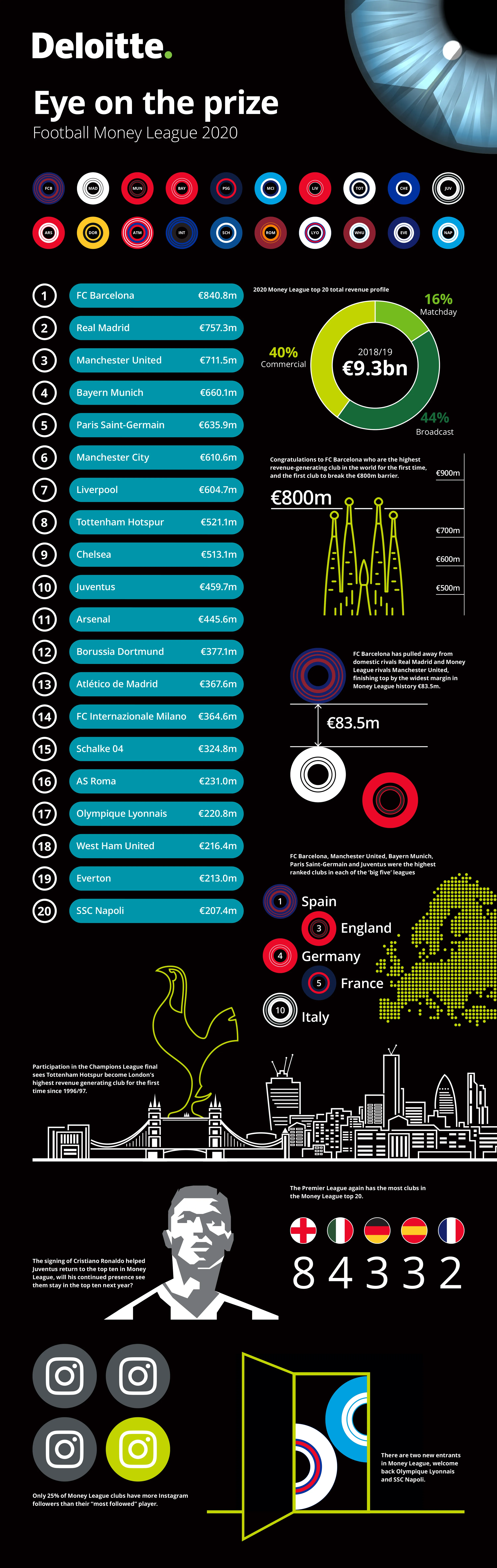 Список из 20 самых богатых клубов Европы (инфографика Deloitte)