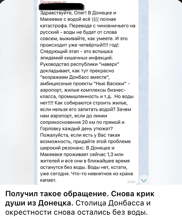 По словам Петра Андрющенко, оккупационная власть Донецкой области якобы решила проблему благодаря водовозкам, но это не дало желаемого результата.