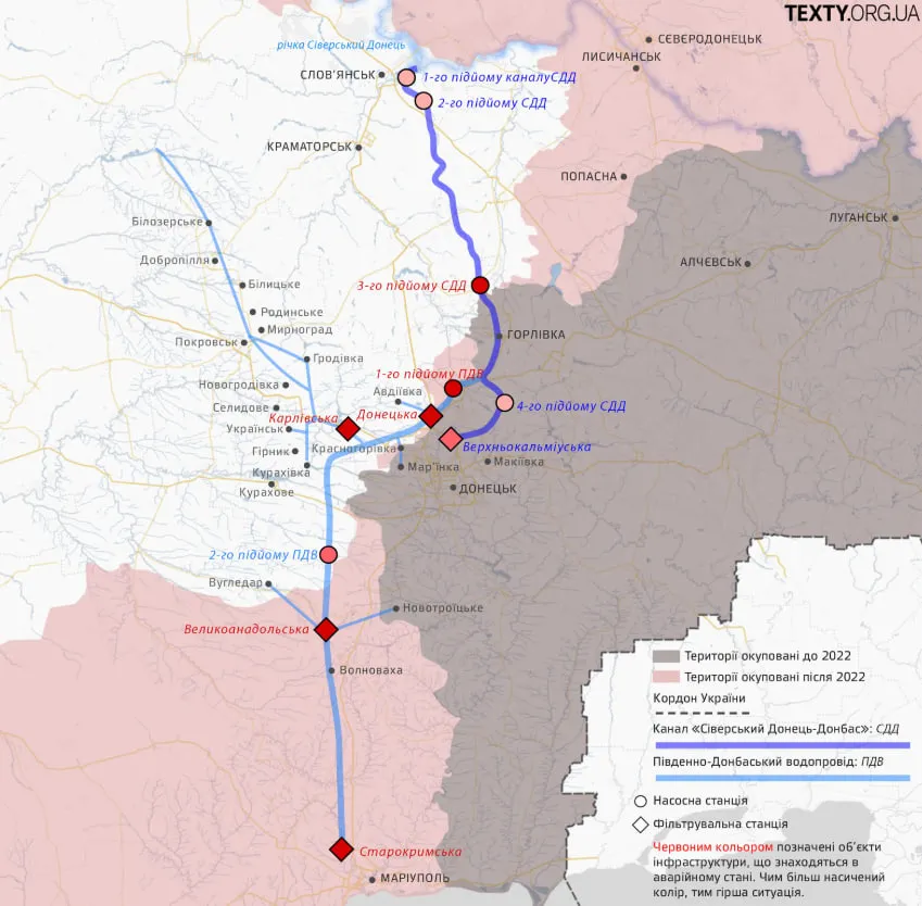 Я не могу назвать эту ситуацию иначе, как катастрофой. Проблема в том, что россияне уничтожили всю инфраструктуру, связанную с каналом снабжения "Северский Донец". Это был единственный путь, которым подавали воду в Донецкую область – как на оккупированную, так и на подконтрольную Украине территорию.