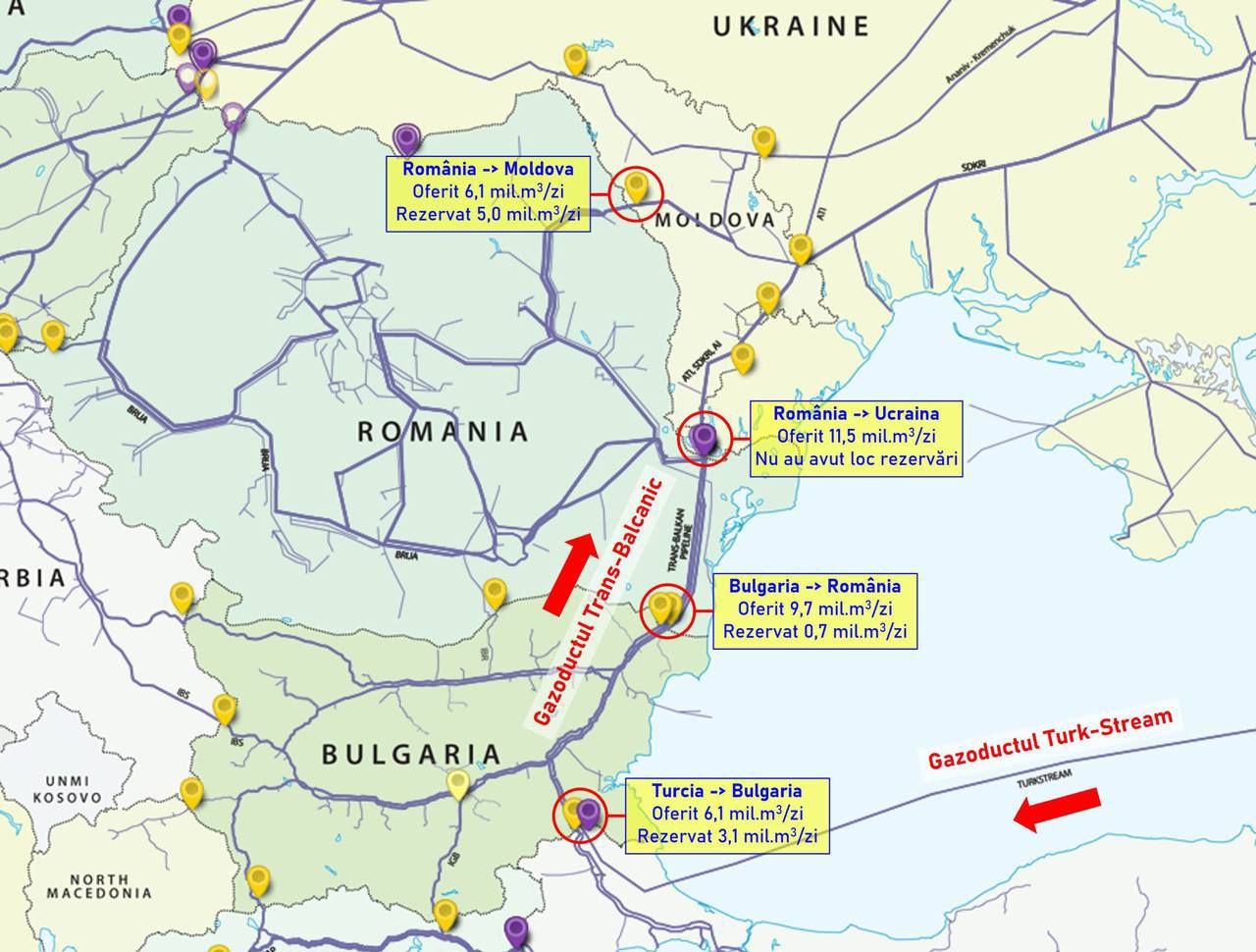 Согласно календарю ENTSOG (Европейская сеть операторов газотранспортных систем), для бронирования предоставляли участки на границе Болгарии и Румынии (точка входа), Румынии и Украины (Иссакча-Орловка), Румынии и Молдовы (газопровод Яссы-Кишинев).