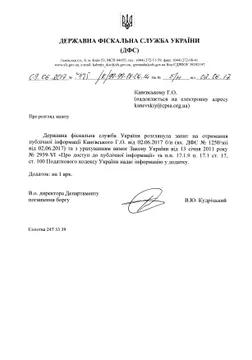 Об этом говорится в ответе ГФС на запрос эксперта по вопросам противодействия коррупции Глеба Каневского, которая есть в распоряжении "Экономической правды".
