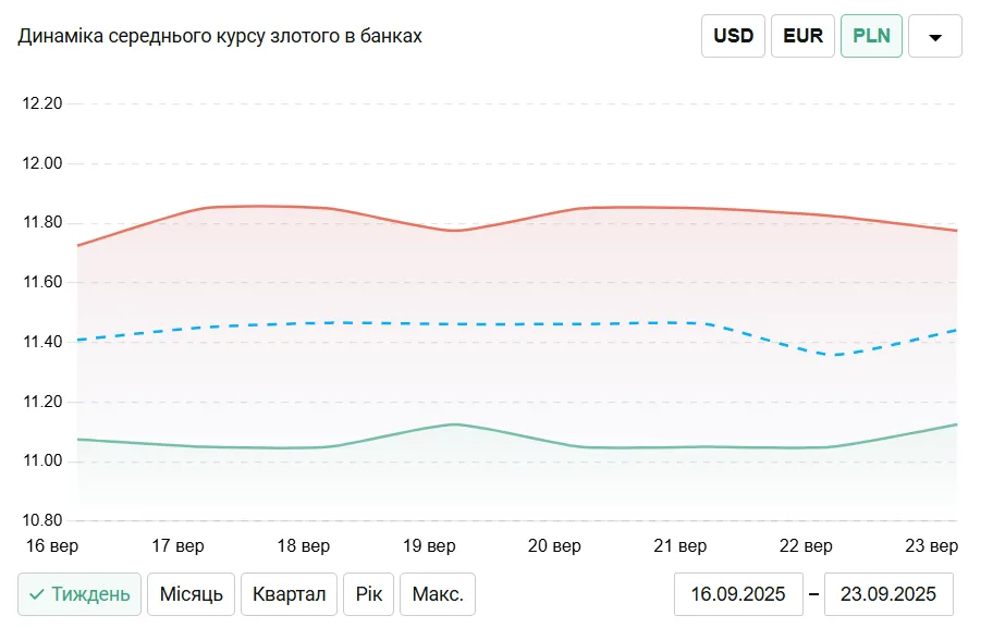 - продажа – 11,47 гривен за злотый (+2 копейки по сравнению с 22 сентября).