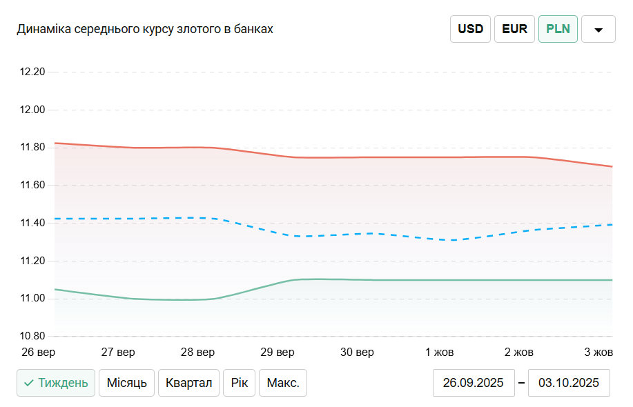 - продажа – 11,70 гривен за злотый (-5 копеек по сравнению со 2 октября).
