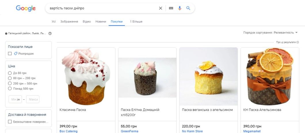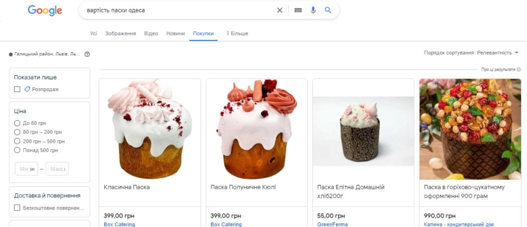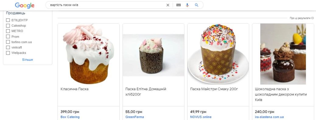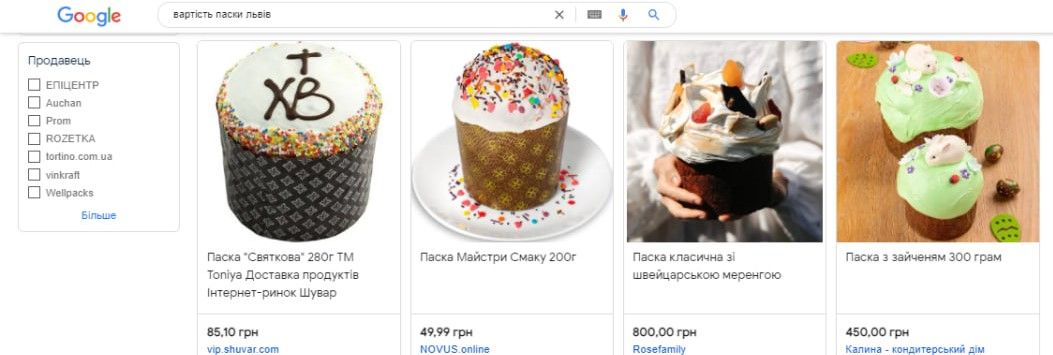 Сколько стоит кулич в Киеве, Одессе, Днепре и Львове / Скриншоты из поиска Google