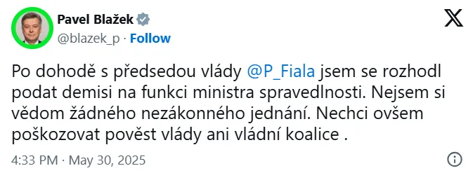 Почему Павел Блажек подал в отставку