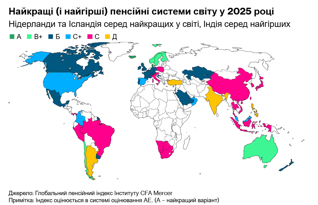Страны оценивали на основе баллов их адекватности, устойчивости и целостности, сообщает 24 Канал со ссылкой на отчет Института Mercer CFA.