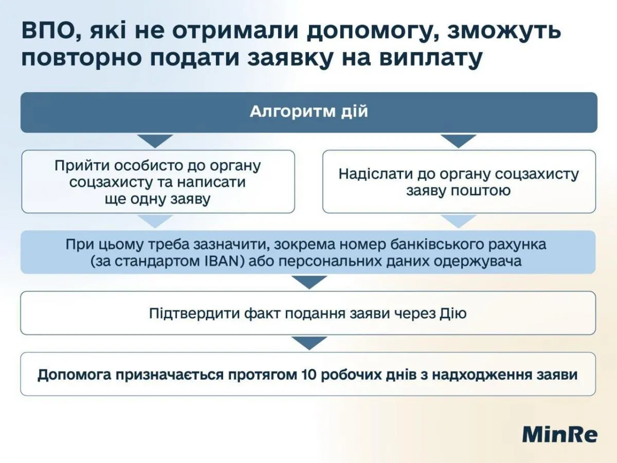 Как ВПЛ повторно подать заявку на выплаты от государства / Инфографика Минреинтеграции