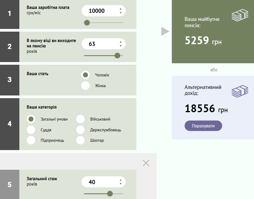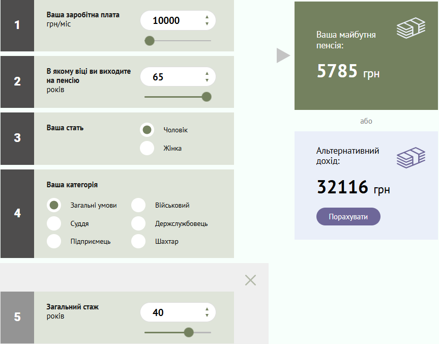 В 63 года на пенсию будет выйти выгоднее. Ведь, при указанных обстоятельствах, пенсия будет уже – 5,3 тысячи гривен.