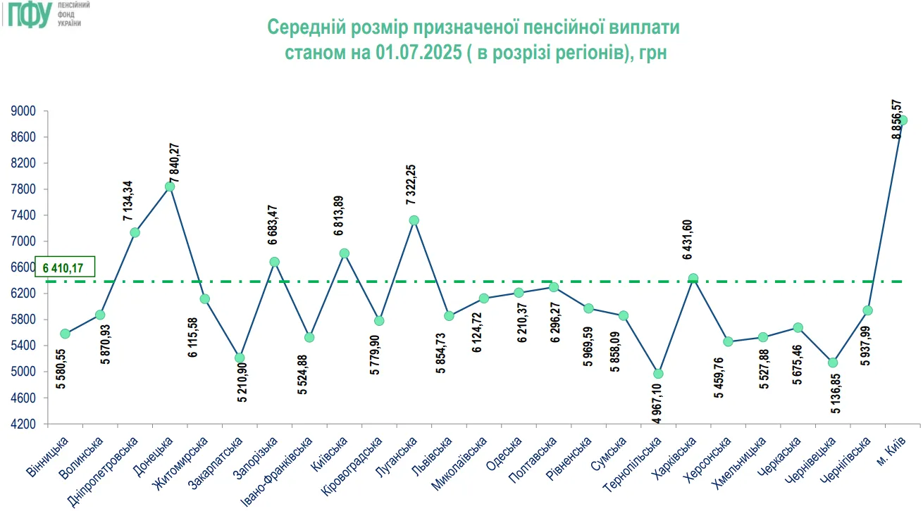 По состоянию на июль 2025 года всеукраинская средняя пенсия составляла 6 410 гривен, сообщает 24 Канал со ссылкой на ПФУ.