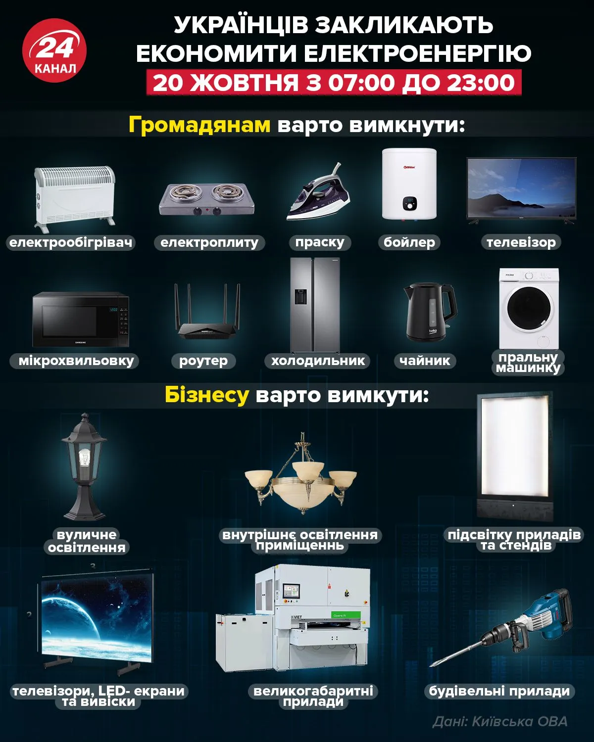 Украинцев призывают экономить электроэнергию / Инфографика 24 канала