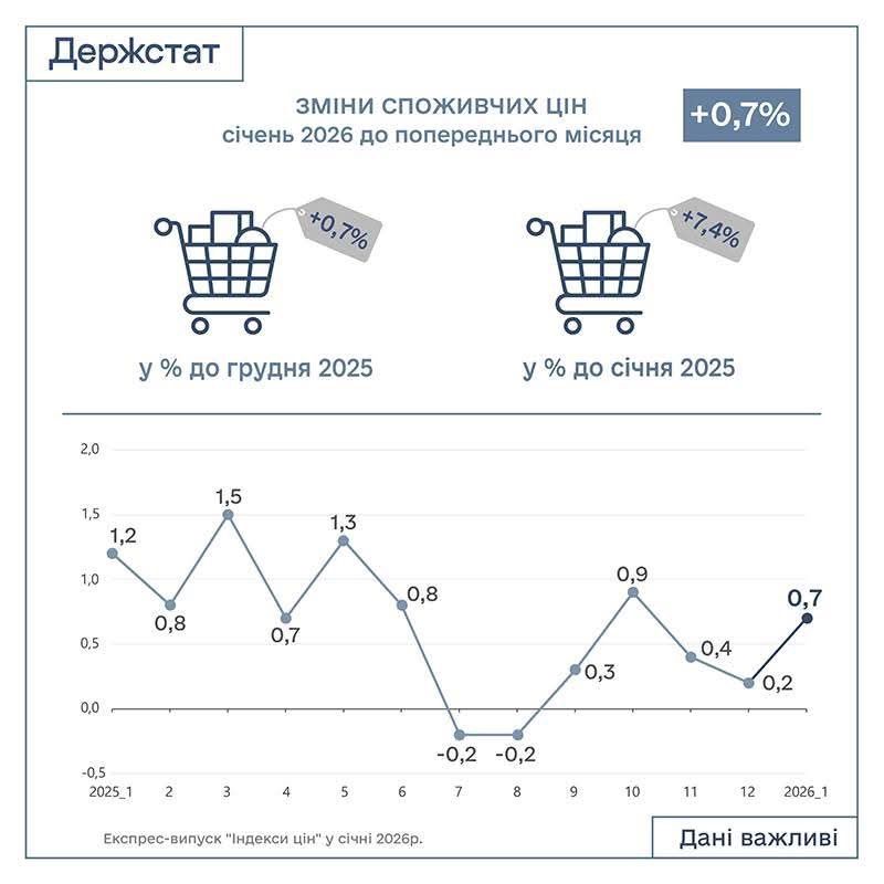 - Инфляция в Украине в январе 2026 года выросла по сравнению с предыдущим месяцем.