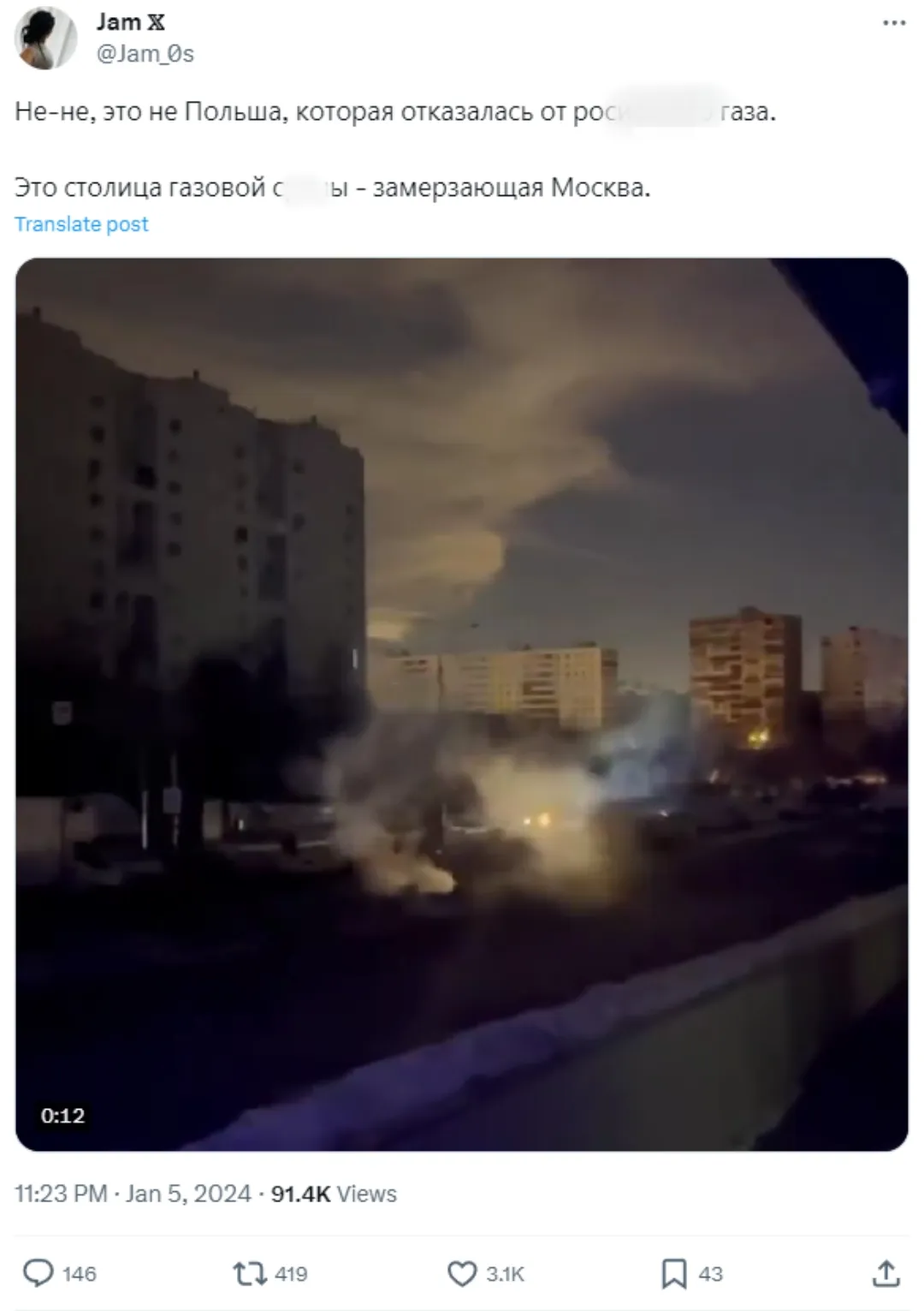 Даже жителей Москвы задело отсутствие тепла в домах. Ранее 24 Канал сообщал, что в результате пожара на подстанции в Москве местные жители потеряли доступ к электроэнергии и отоплению. Для подогрева они были вынуждены использовать временные методы, такие как разжигание костра во дворе.
