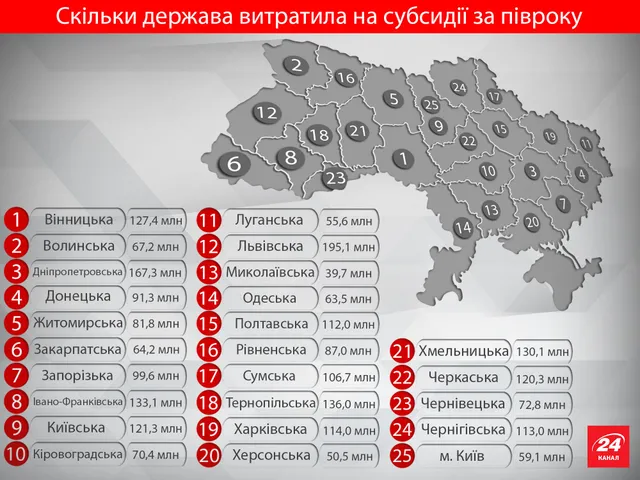 Загалом у січні-червні 2016 року держава на субсидії витратила майже 2,4 мільярда гривень. Як підрахували у Державній службі статистики України, середній розмір субсидії на одне домогосподарство в червні склав 217,6 гривень.
