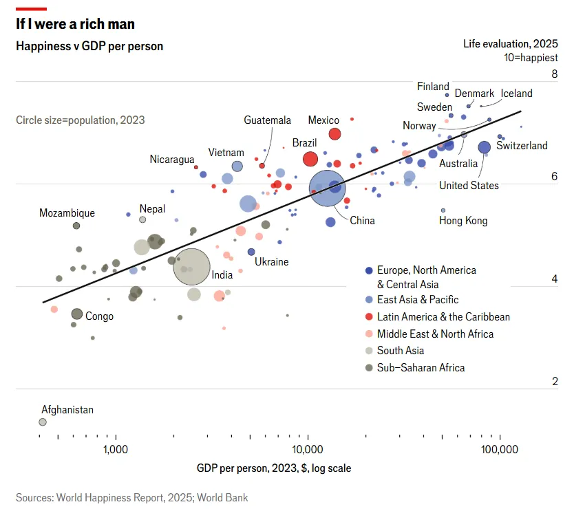 Скандинавські країни також є одними з найбагатших країн у світі на людину, що зазвичай має значний вплив на задоволеність життям.