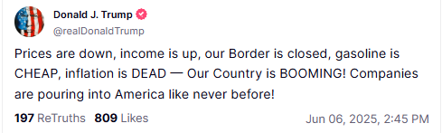 - Дональд Трамп заявив, що в США спостерігається зниження цін, зростання доходів і низькі ціни на бензин, що свідчить про процвітання країни.