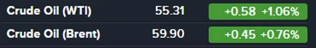 Станом на 9:40 за Києвом ціна на нафту марки Brent складає 59,90 доларів за барель, WTI коштує 55,31.
