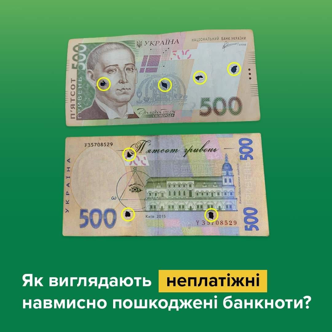 Приклад навмисно пошкодження валюти, яку не приймають під час обміну / Колаж НБУ