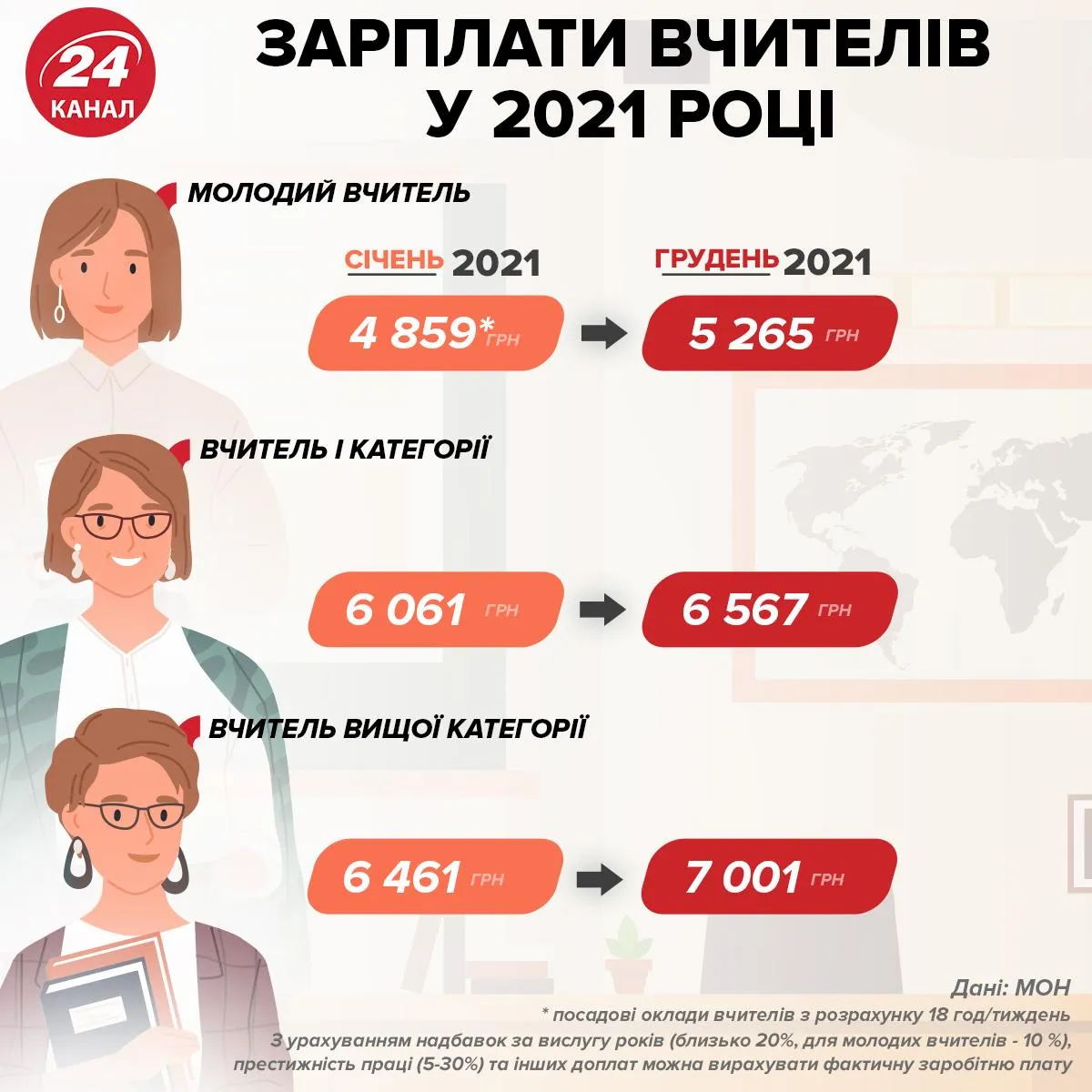 Зарплата вчителів на 2021 рік / Дані МОН / Інфографіка 24 каналу