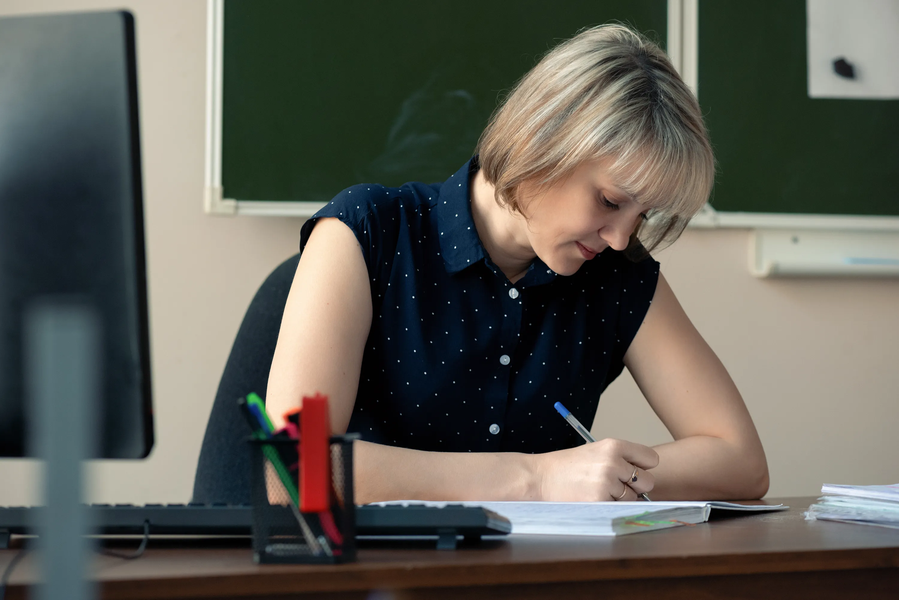 Вчитель заповняє шкільний журнал / Фото "Конкурент"