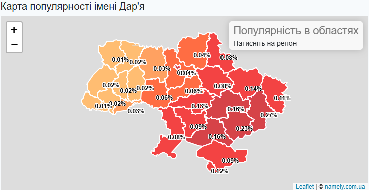 Популярність імені Дар'я / карта ресурсу namely.com.ua