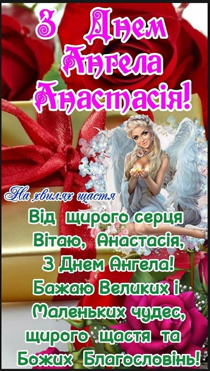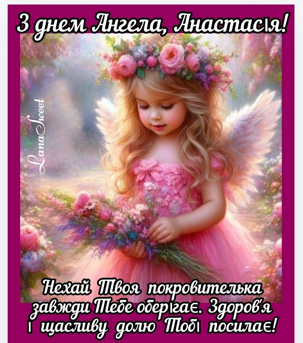 Анастасіє, твоє ім’я – символ відродження й сили. Бажаю, щоб у твоєму житті завжди знаходилося місце для нових початків, для радості й для світла. Нехай ангел-охоронець дарує тобі натхнення, а кожен день буде сповнений теплом і любов’ю.