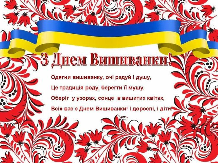 Вітаю вас з Днем вишиванки і бажаю завжди залишатися патріотами рідної країни – України. Слава Україні!